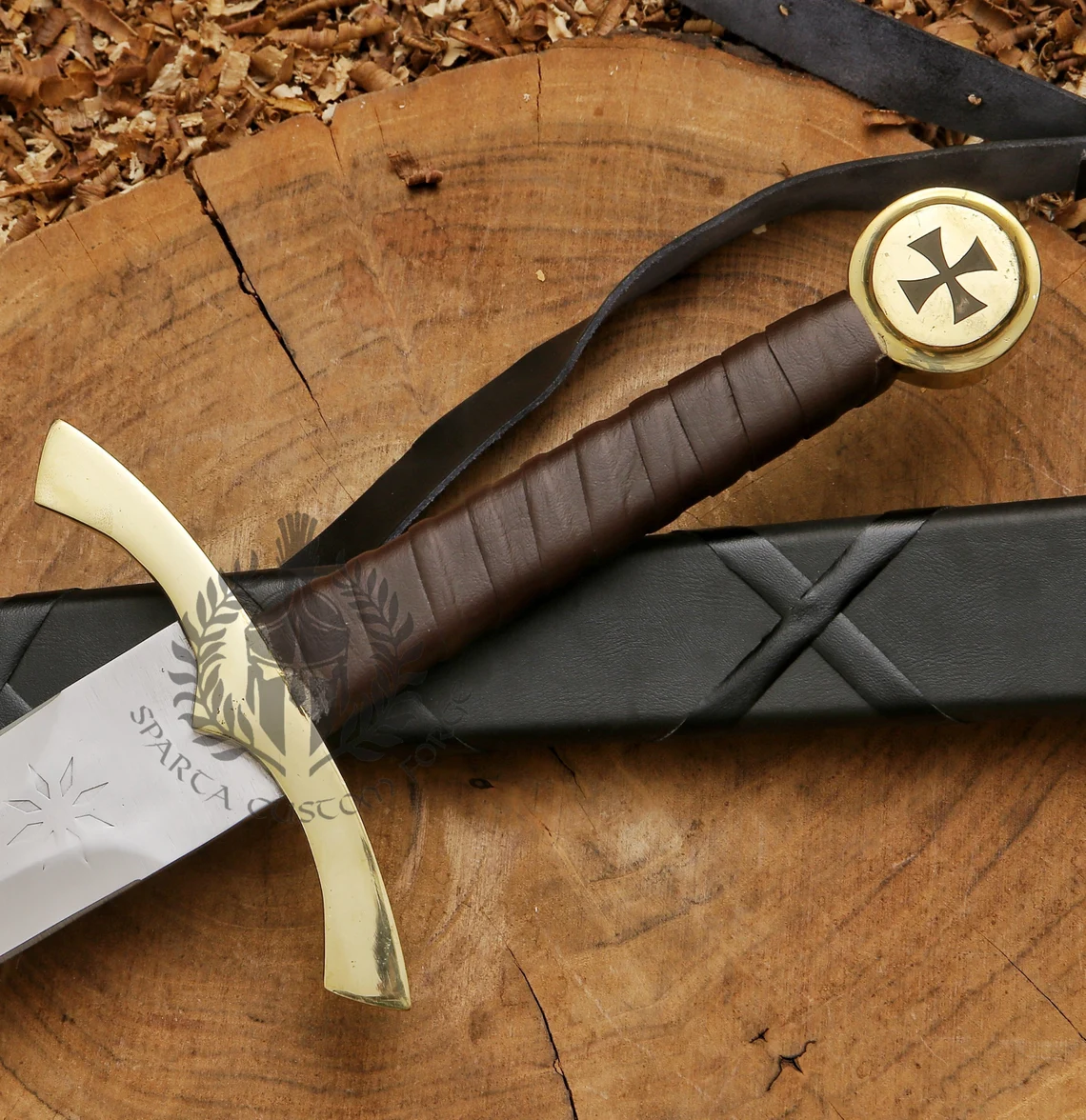 Handle Material: Wood with leather wrap and brass pommel and guard